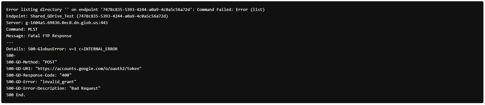 'Error Listing Directory' due to expired 'Google Auth Token' for Google Drive Endpoints