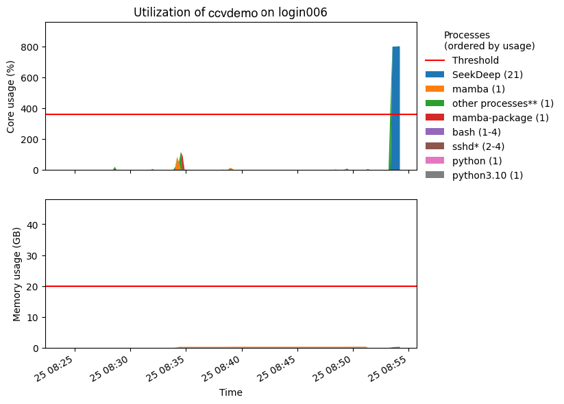 *This process is generally permitted on interactive nodes and is only counted against you when considering memory usage (regardless of the process, too much memory usage is still considered bad; it cannot be throttled like CPU). The process is included in this report to show usage holistically.